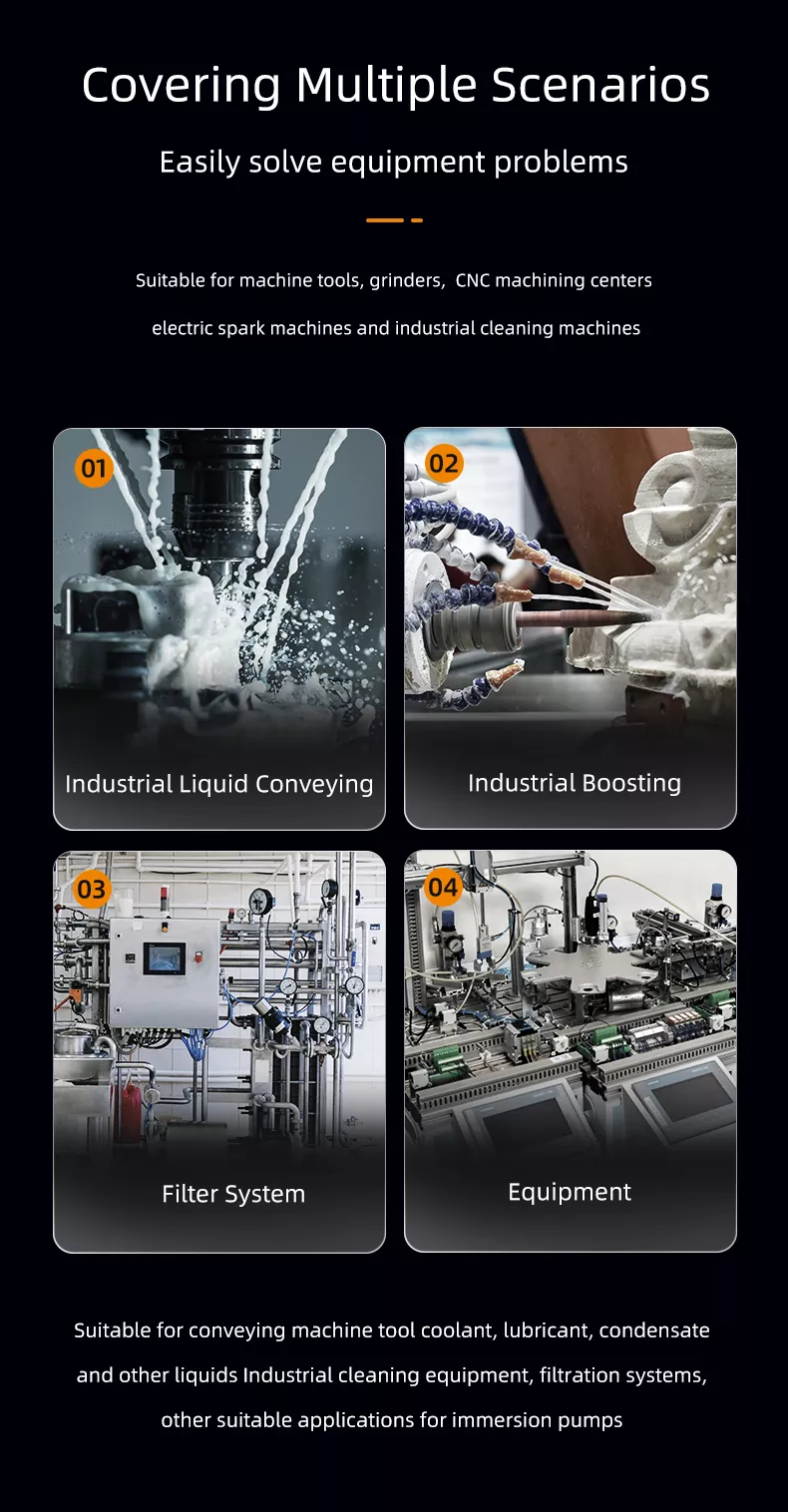 以下はCHVシリーズの紹介です。 CHV水中多段遠心ポンプは、水中ポンプまたはマシンポンプとしても知られており、工作機械の冷却剤、潤滑剤、凝縮水の移送、工業用洗浄装置、濾過システム、および水中ポンプの使用に適したその他の用途に使用されます。工作機械、研削盤、CNCマシニングセンター、放電加工機、工業用洗浄機、その他の機器との統合に最適です。