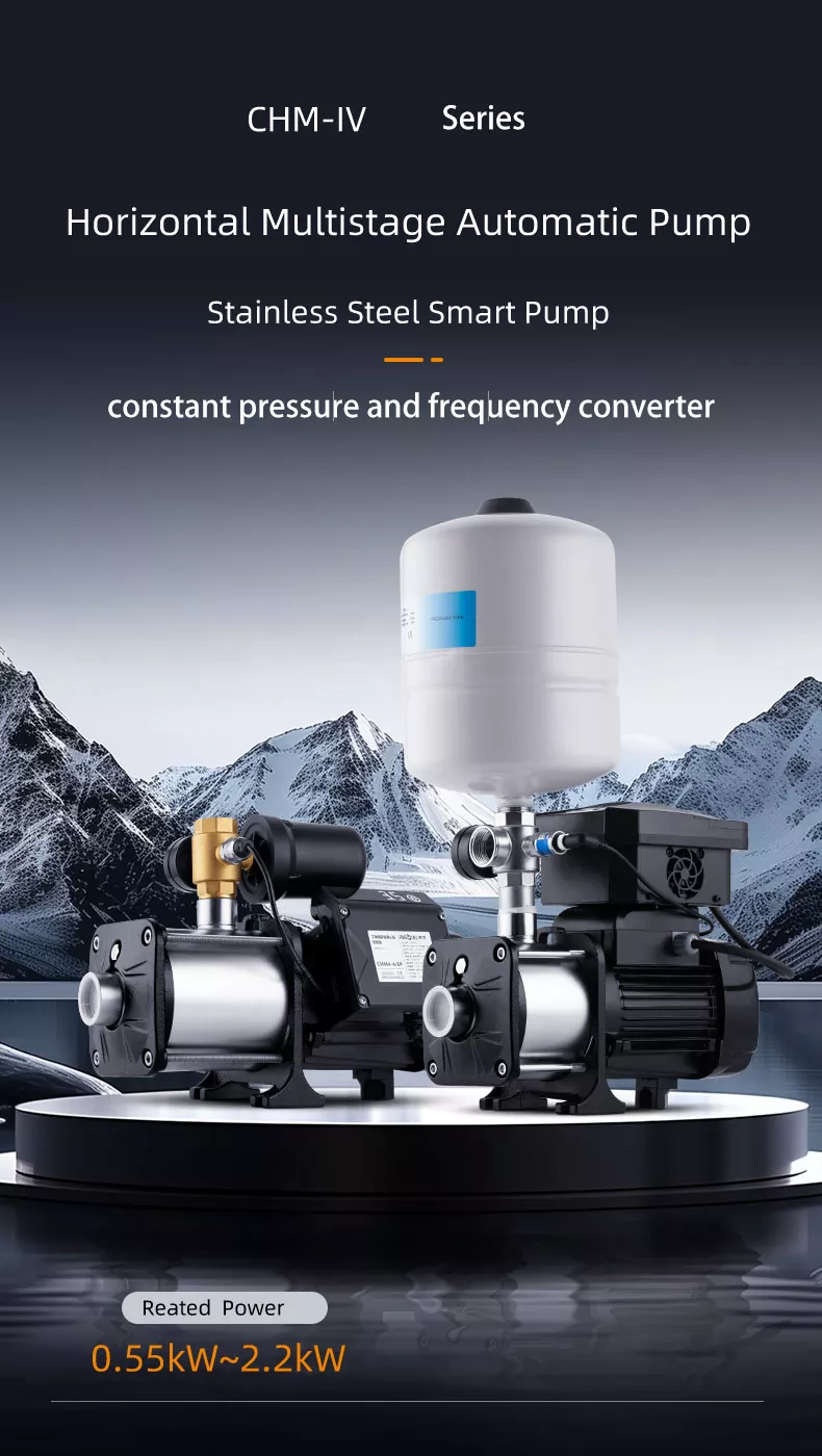 CHM12/IVシリーズスマートインバーターシリーズ水平ステンレス鋼多段階の遠心ポンプは、現在コンパクトな構造と安定した作業、低動作騒音、最大44〜70%のEIXICEを備えた市場で比較的成熟した製品です。すべての水を通過する成分はステンレス鋼Aisi304で作られています。