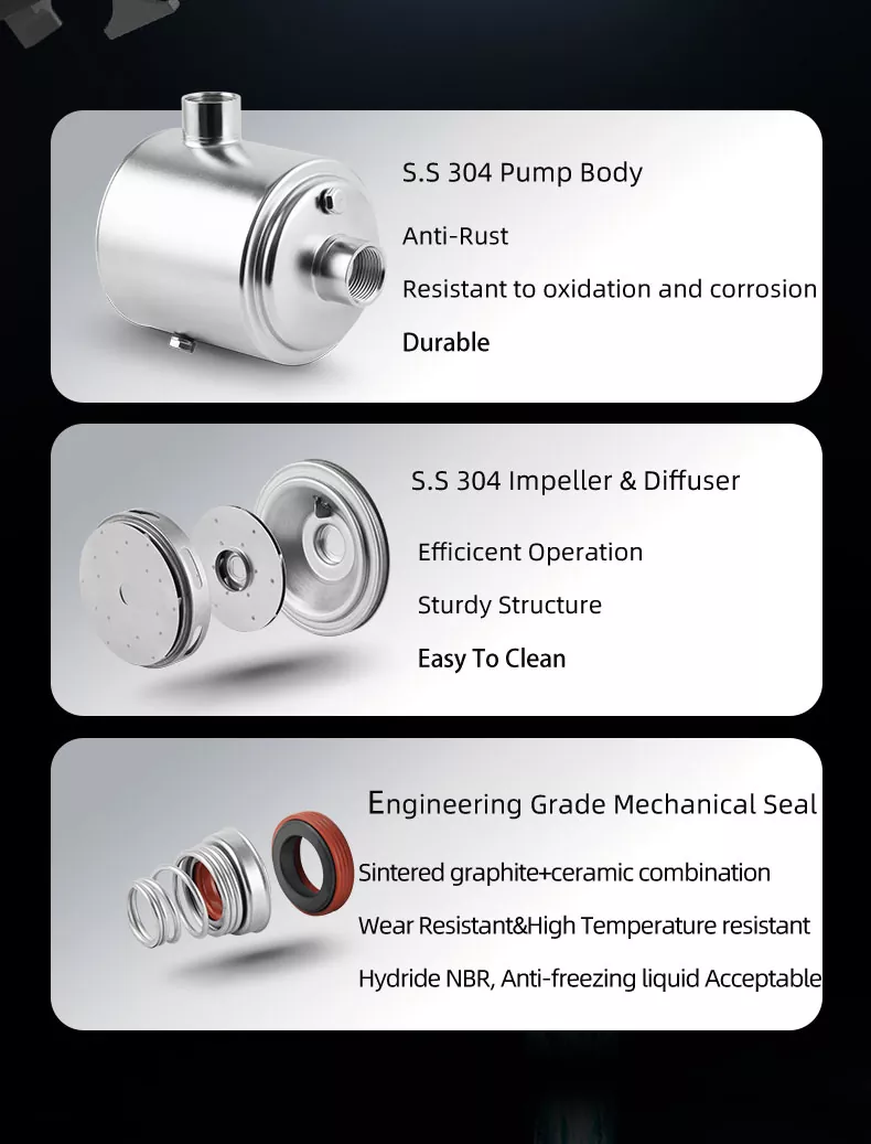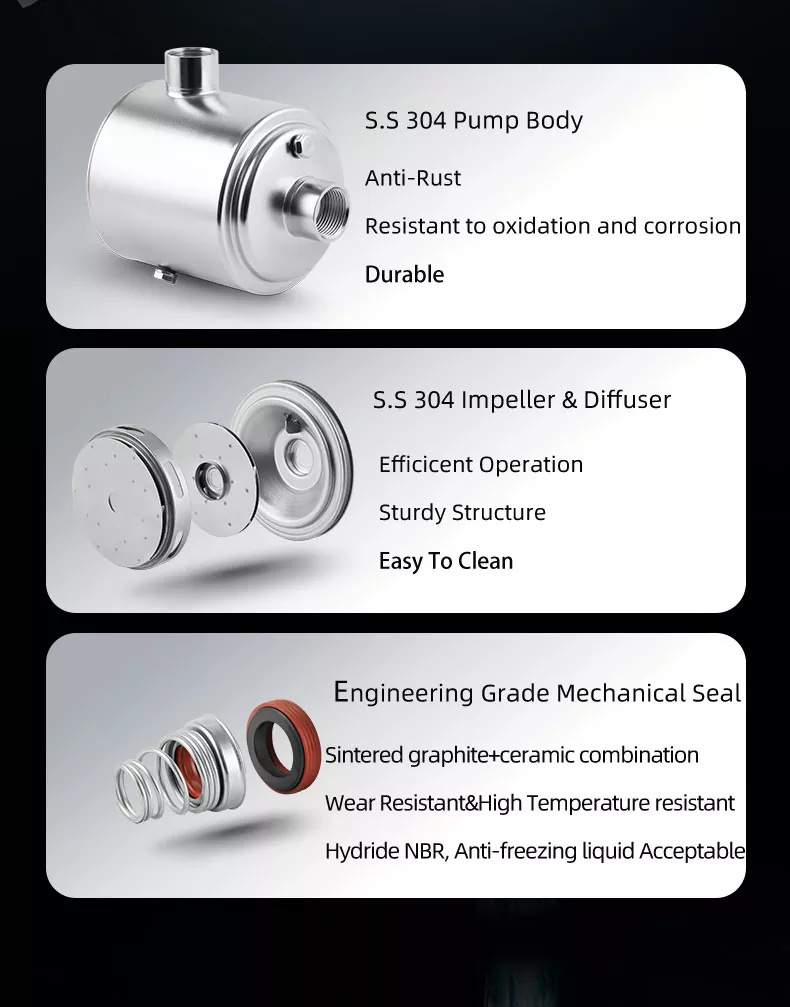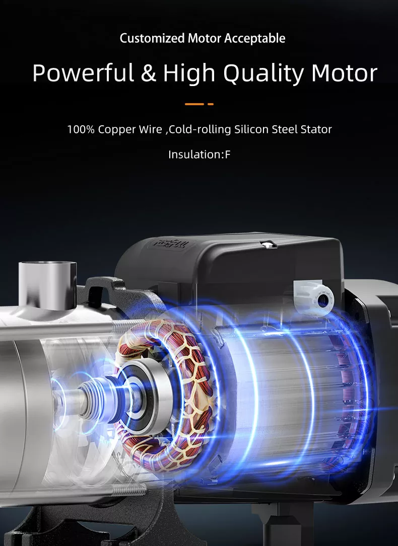 各ステージが全体的な圧力出力に貢献すると、必要なときにいつでも安定した強力な水の流れを楽しむことができます。庭に水をまくことから、複数のシャワーを同時に走らせることまで、このポンプは信頼できる一貫したパフォーマンスを提供します。